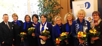 Foto: von links: Wolfgang Borcherts und Ute Mowitz-Rudolph (Geschäftsführung VSB), Eva Fuchs, Alexandra Gregor, Beate Keller, Erika Schnappinger, Juliana Daum und Lieselotte Feller vom VSB-Vorstand und Dr. Elfriede Schießleder, Landesvorsitzende des KDFB